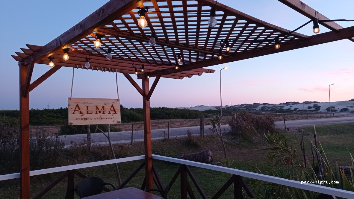Fantástico parking a pie de playa de la Cervecería Alma. El dueño muy amable, su única condición era que lo dejemos limpio. Muy buenas cervezas artesanales, y sangrías caseras. Además puedes comer/cenar si quieres. Con hierba y llano. Y servicio de llenado de agua