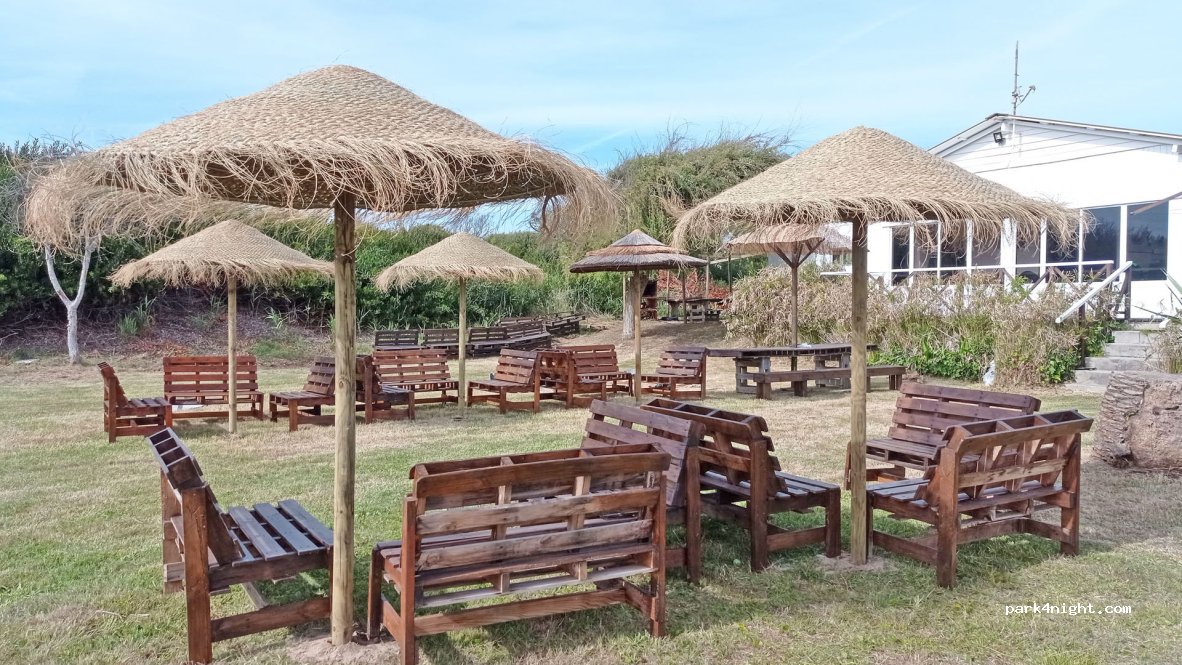 Der freundliche Barbesitzer stellt seine Wiese zur Verfügung. Wir brauchten keine Keile, da der Boden sehr eben ist. Die private, sehr freundliche Einweisung mit Hinweis auf Müllentsorgung und Wasserstation gab es Stunden nach der Ankunft. In der Bar gibt es einige Kleinigkeiten. Die Burger sind zu empfehlen. Der Strand ist gleich hinter der Bar, wenn man die wunderschönen Dünen überwunden hat.