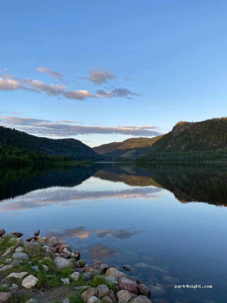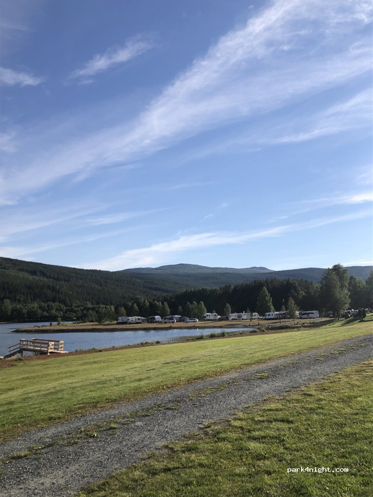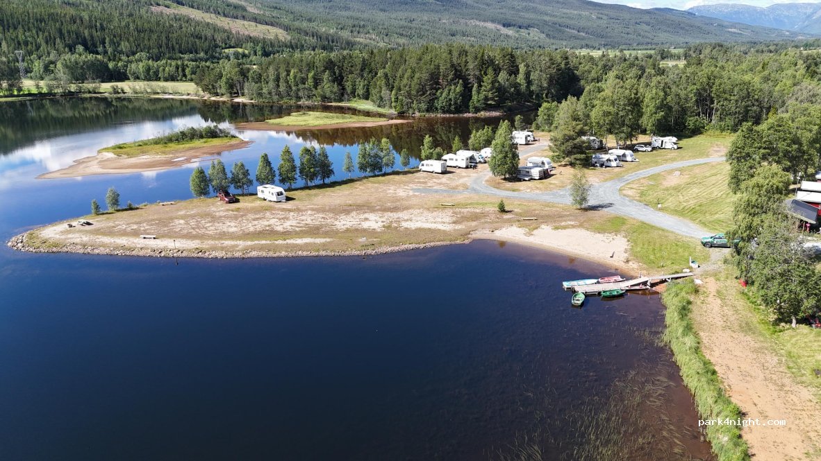 Beau camping avec des commodités un peu vieillissantes. Les emplacements au bord du lac sont magnifiques. Nous y avons passé 2 nuits pour profiter du cadre. Nous avons fait une très belle balade dans la campagne norvégienne. Possibilité de pêcher dans le lac avec l’achat d’un permis de pêche à la journée ou plus longtemps. Au soir nous avons assisté à un spectacle d’aurores boréales incroyables.