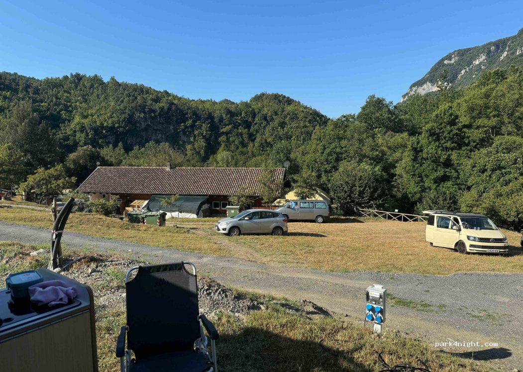 Il posto di per sé è molto bello, servizi così cosi, ma la strada per arrivarci è un incubo, dal paese (Borgo Laino) 12km di strada stretta non adatta a grossi camper con pendenze che arrivano almeno al 20/25% i freni vengono messi a dura prova.