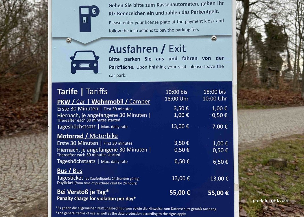 Übernachten ist hier ab sofort verboten!!! Camper bezahlen jetzt den gleichen Preis wie PKW. Erste 30 Min. 3,50€, danach jede weitere 30 Minuten 1 €, von 10-18 h max 13 €, von 18-10 h max. 7€ (aber nur parken, nicht übernachten!). Schade, wir mochten den Platz bisher, weil grundsätzlich unkompliziert und man dort toll wandern kann. Nur zum Parken leider viel zu teuer. Sehr schade.