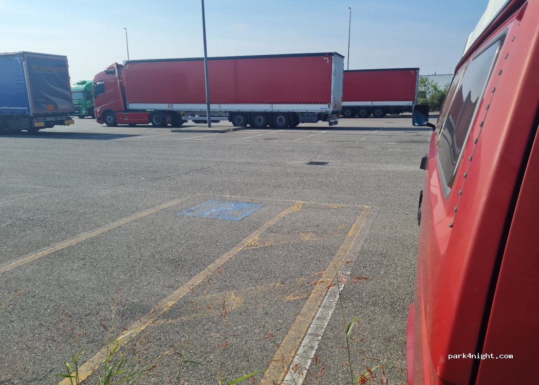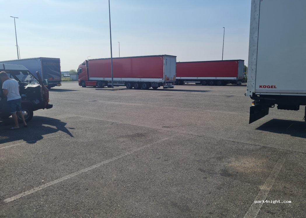 Es ist wirklich nur ein Stellplatz. Durch die vielen Lkws liegt natürlich am Rand einiges an Müll herum. Und der ein oder andere geht auch im Gebüsch sein Geschäft verrichten. Am Abend kommen leider die ratten. Wir standen eine Nacht von Samstag zu Sonntag und dafür war es sehr ruhig. Eine Bahn fährt auch vorbei. Aber nachts anscheinend nicht.