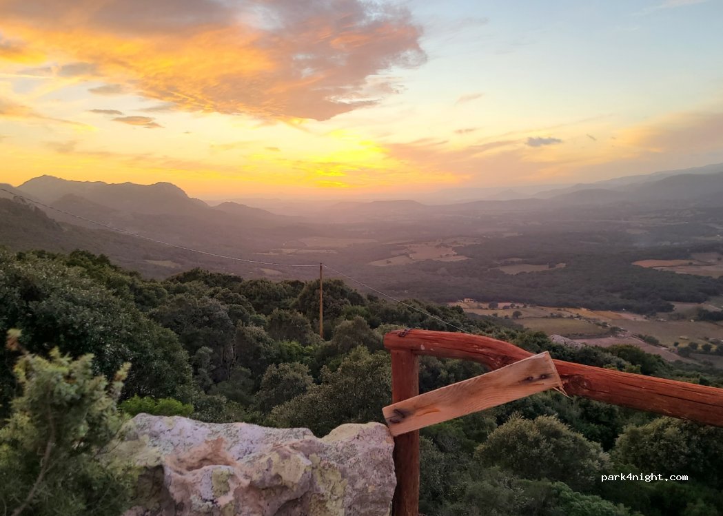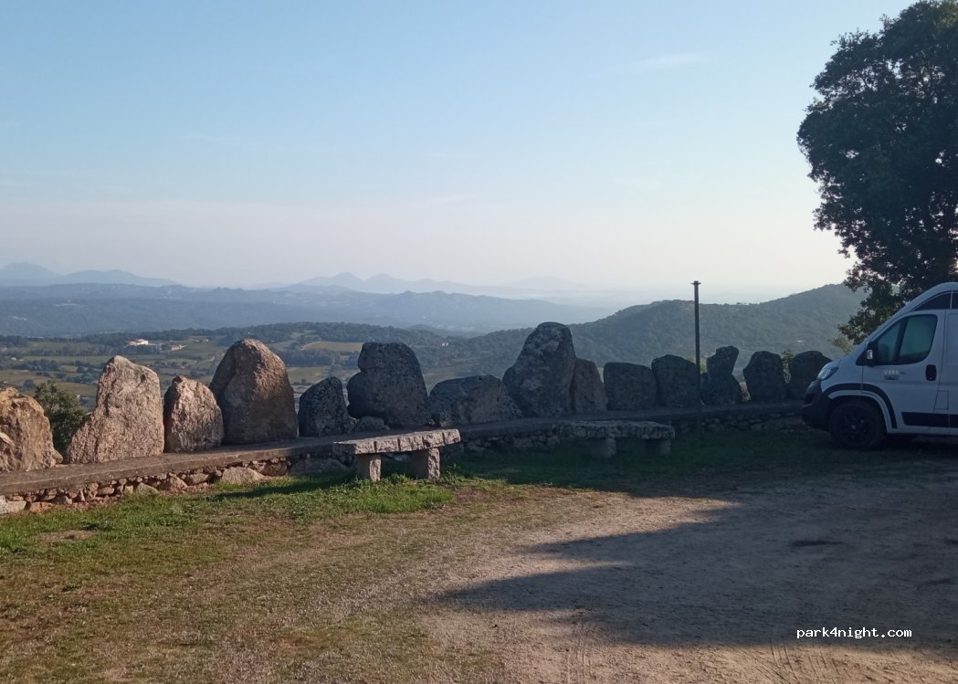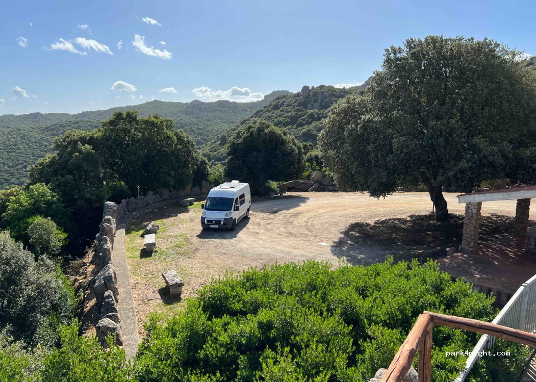 Exzellenter Spot zum Übernachten, mit fantastischer Aussicht ins Tal! Der Parkplatz ist sauber, gut zugänglich und man hat vollen Handy Empfang. Der Hafen von Olbia ist locker in 30 Minuten erreichbar. Wer sehr früh aufbrechen muss, die Bars in Monti haben bereits gegen 5.00 Uhr geöffnet. Ideal wenn man eine frühe Fähre gebucht hat.