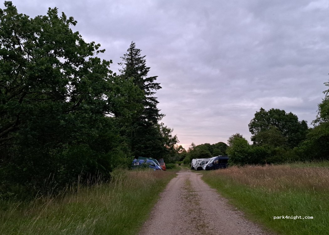 Great park up. 2 vans, 2 motorhomes and 3 cars here overnight. Lots of space. Very quiet. No road noise heard. Open grass area.