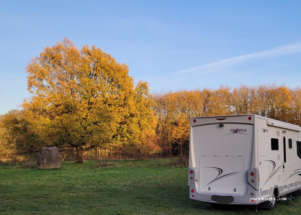 Prima plek om te overnachten op onze doorreis. Bij een bos waar je lekker kunt wandelen. Er stonden een stuk of 8 campers.