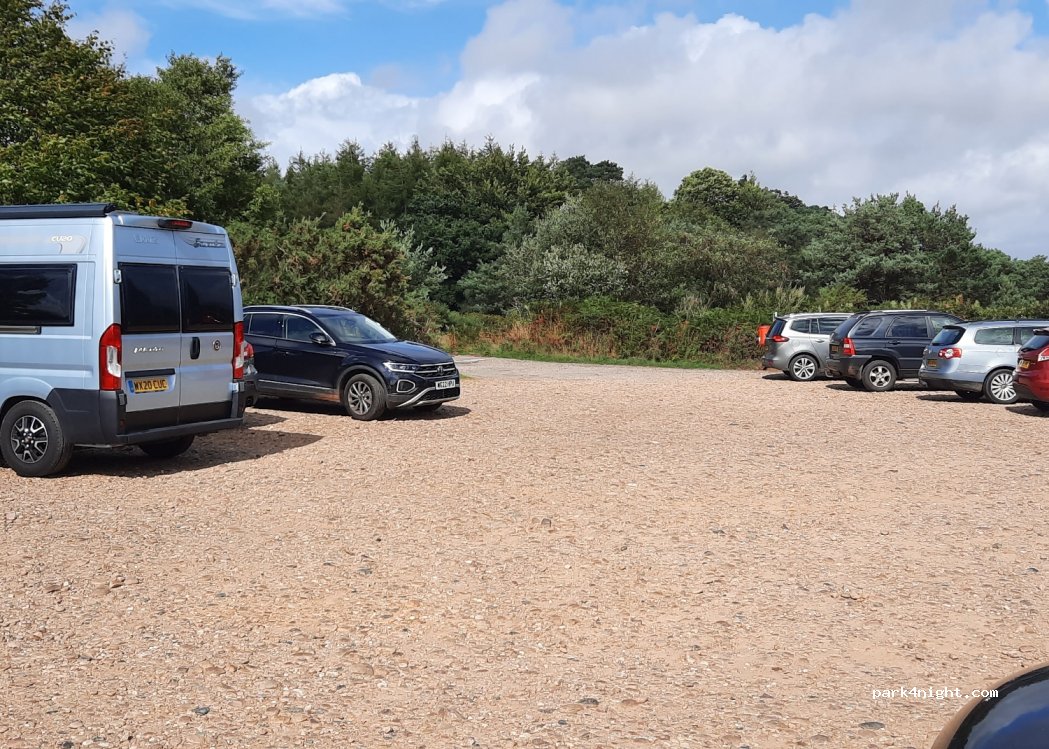 Free car park, space for a couple of motorhomes. Popular dog walking spot.
