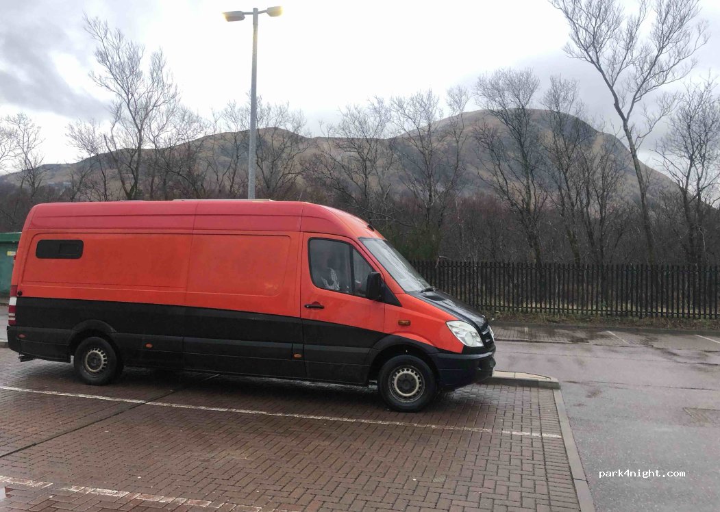 Mini parc commercial sans aucune signalisation détaillant les restrictions de stationnement donc on peut y dormir. M&S et Aldi ont des toilettes pour les clients pendant les heures d'ouverture si vous achetez quelque chose.
