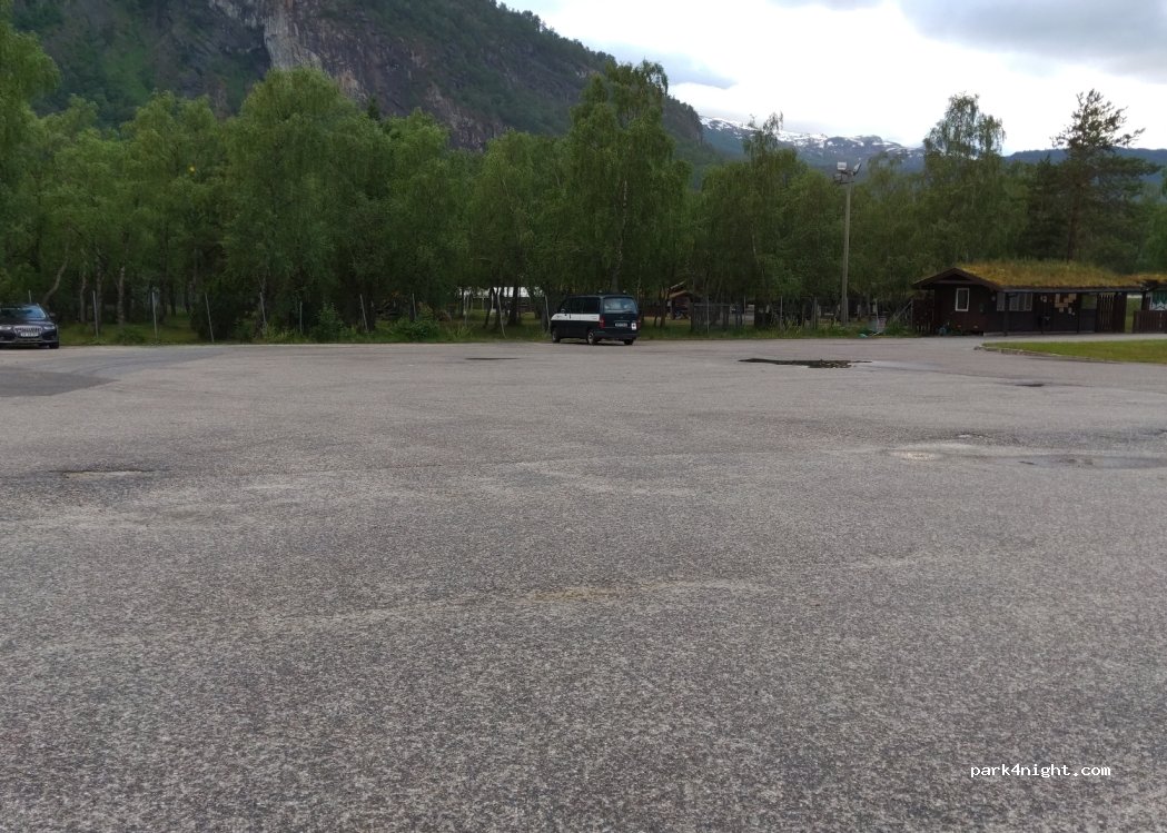 Bare en parkeringsplass, men helt fint å stå for natten. Nær butikk og vinmonopol.