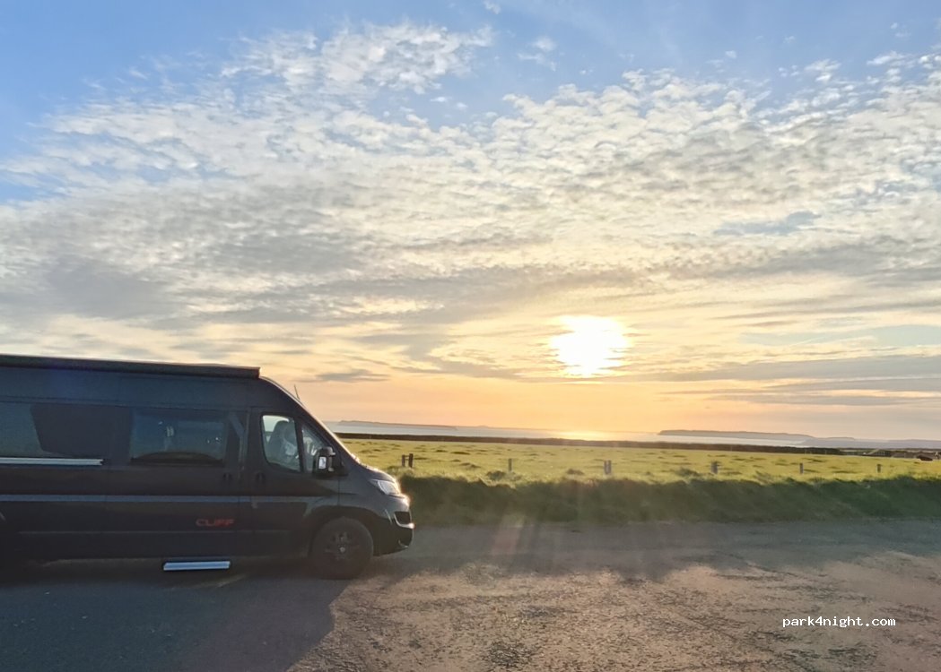Level parking and very quiet. An excellent place for watching the sunset and with easy access for walking along the coastal path. Overnight sleeping allowed no problem.