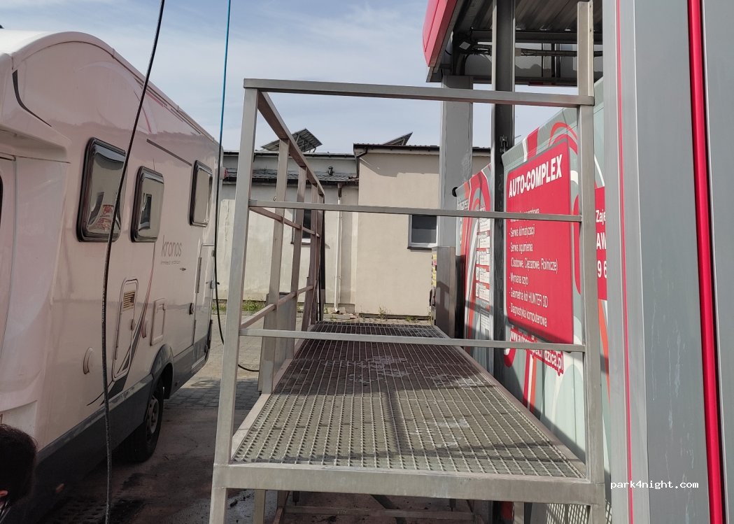Wohnmobilgeeignete Waschstation mit hoher Rampe zur Dachreinigung