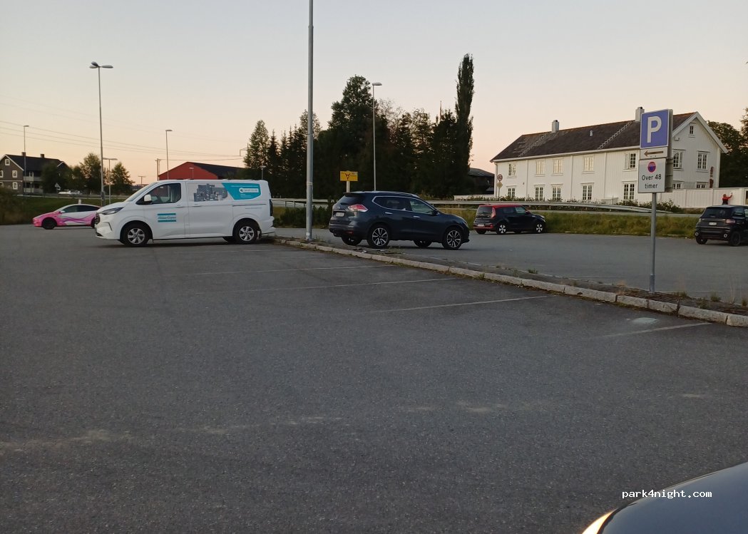 Assez grand parking juste à côté de l'E6 très fréquentée