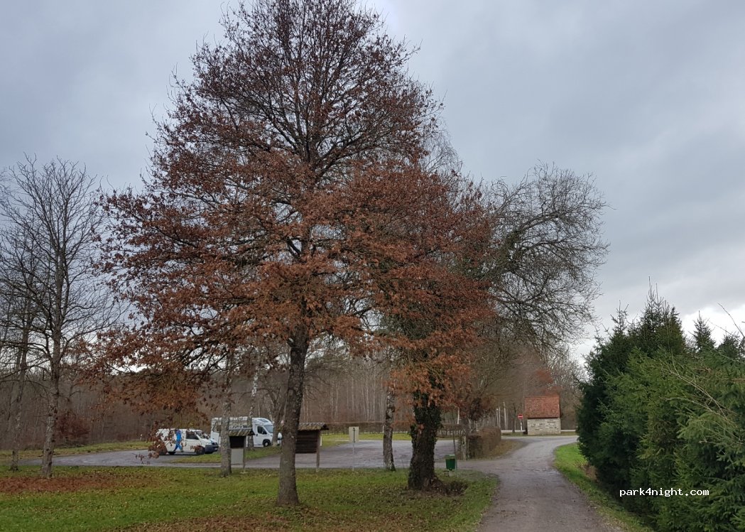 Schöner großer Platz. Kostenlos. Durch Bäume sehr schattig. Aber bei Höhen größer 3 Meter etwas kompliziert beim Einparken. Nachts sehr ruhig. Schöne Wandertouren können von hier gestartet werden.