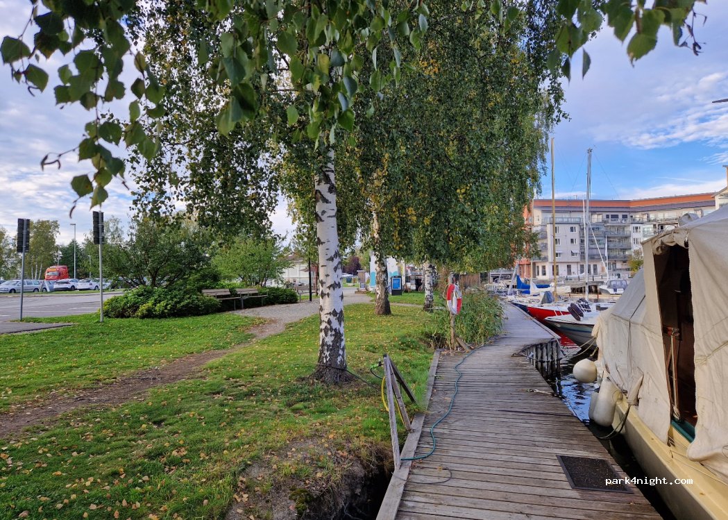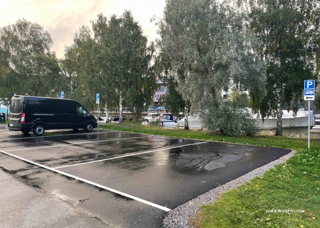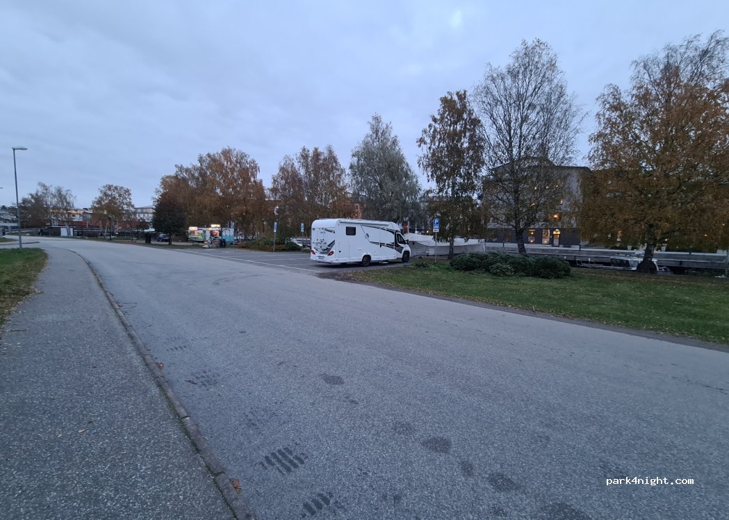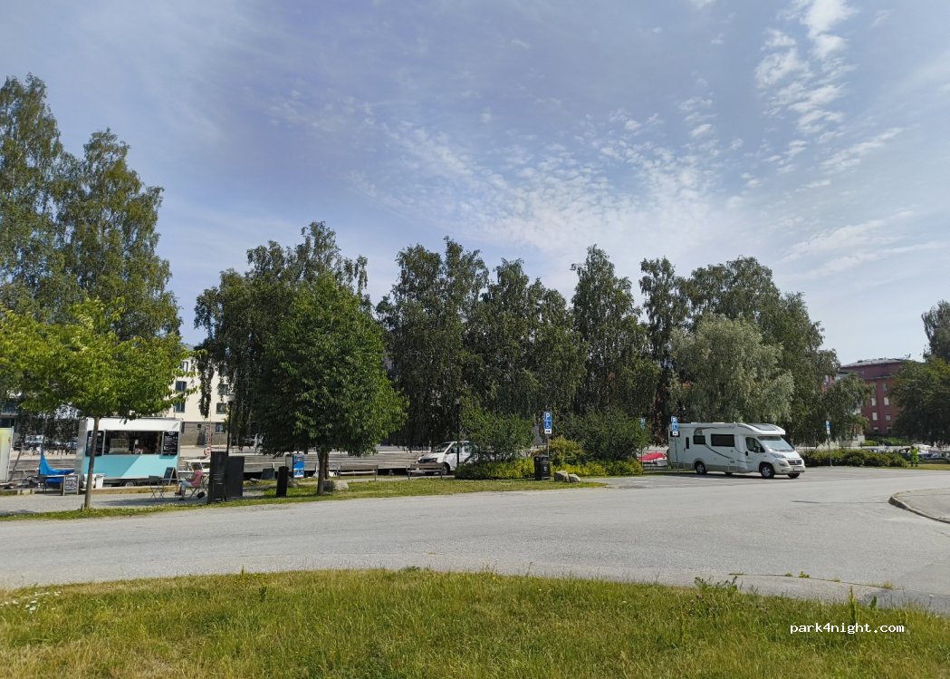 Ottima soluzione. Ci sono solo 4 ampi spazi e nessun servizio a parte i bidoni della spazzatura e tavoli con panche . Molto silenzioso per la notte . Noi lo abbiamo utilizzato per visitare Stoccolma. A 500 m a piedi si trova la fermata del treno, al capolinea si prende poi la metropolitana e in 50 minuti totali di viaggio sei in centro a Stoccolma.
