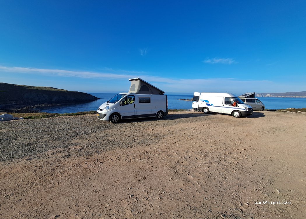 Super Aussicht, Platz für drei bis vier Wohnmobile. Sehr windig, aber die 10£ sind für die tolle Aussicht völlig in Ordnung. Keine Infrastruktur am Parkplatz.
