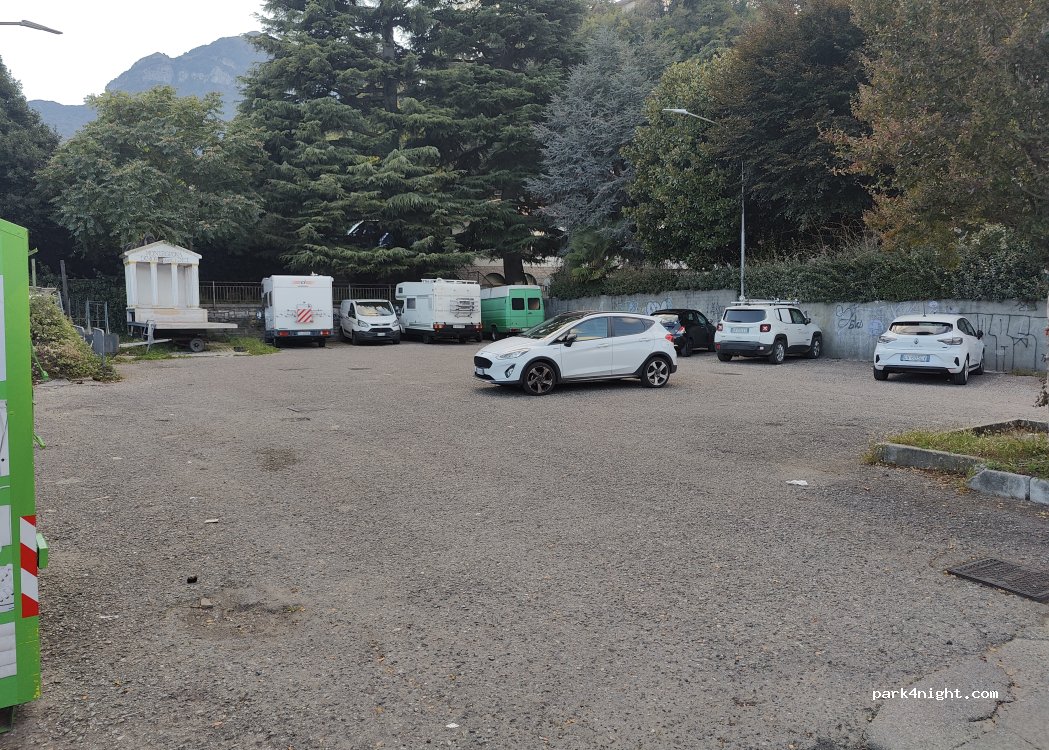 Parking accessible facilement avec van de 6m. À plat, pas très propre et un peu bruyant à 6h30 du matin. Arrivés vers 19h30, reste pas mal de places. (Parking du dessus un peu plus complet) Mais reste bien situé pour une nuit. Menaggio centre à 5 min à pieds. A 10 min à pieds de l’embarcadère pour Varena, Bellagio … avec billetterie sur place.