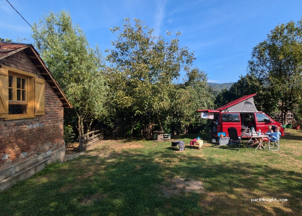 100% recommend this place, we had an absolutely amazing stay! Super nice and kind people, they even brought us rakija and a home-made juice (cause I can’t drink alcohol). Clean toilet and shower, warm water, enough space for a camper van and table with chairs. Great atmosphere! The price is EUR 9 per person, nothing extra for the van - electricity and warm water included. :)