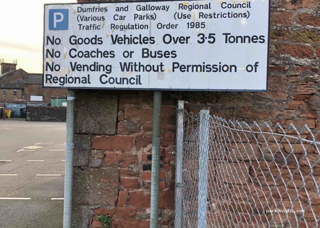 Free council run park up. Great location in town centre. Very quiet night with one other van. No services. Safe and level. Only decent night stop in area. See photo for restrictions.
