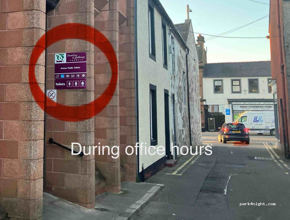 Quiet and free carpark. We parked by the wall and had a peaceful night's sleep. Bins can be found on the main street. Public toilets are on Downies Wynd. The mobile signal is weak, so bring a book. The town is lovely and twee. A lovely stop over x