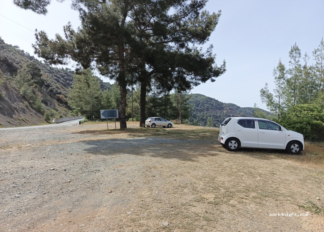 Grosser Platz neben einer nicht sehr befahrenen Straße ca 1 km von dem Kykkos Kloster (sehr sehenswert) entfernt. Schöner Ausblick auf das Meer.