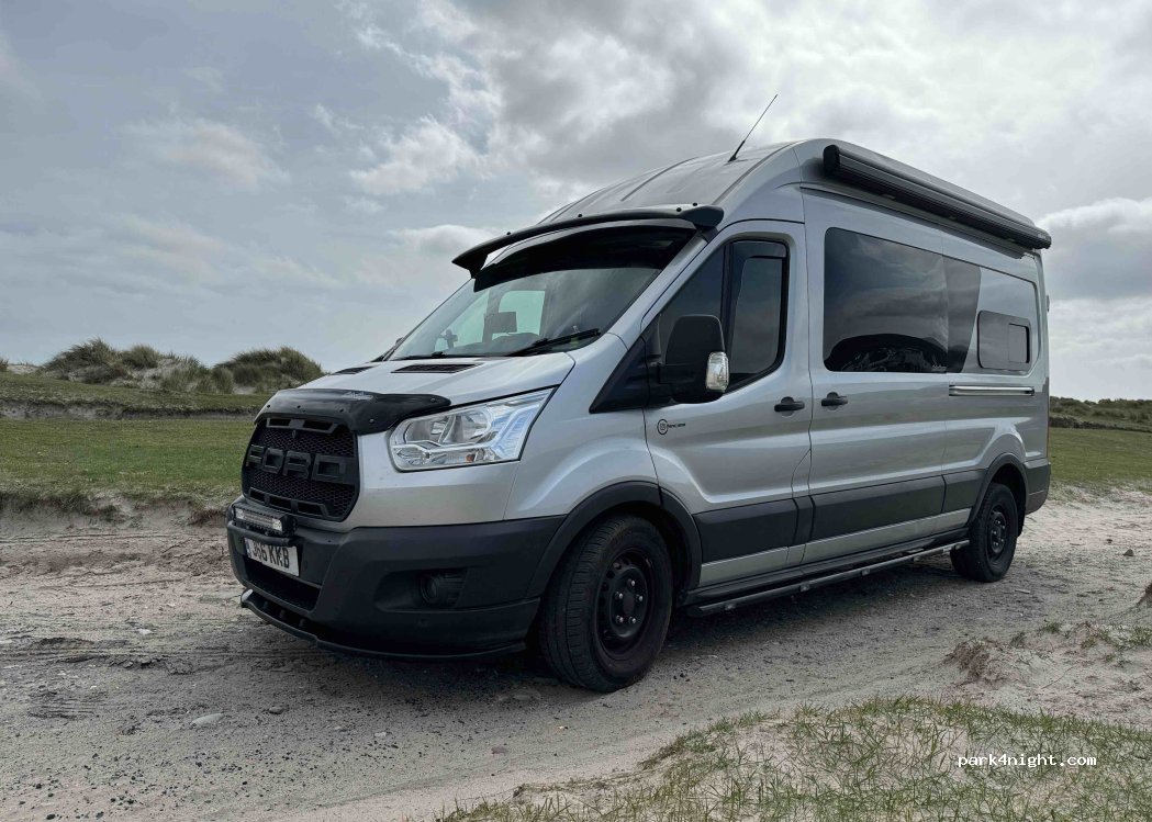 Nice place for several campers on a pebble beach with a view over the bay of Keel Strand. Many surfers and kite surfers and related sportsmen come here. Free overnight stay with public, good and clean toilets within walking distance. Wake up with a view! Pay attention to the pebbles: in some places they are larger and you have a chance of getting stuck. Also maybe watch out for strong winds right on the coast. You are about ten meters from the high tide line at high water. We therefore left when a storm with wind force 8 arrived. Furthermore, several surf schools nearby.