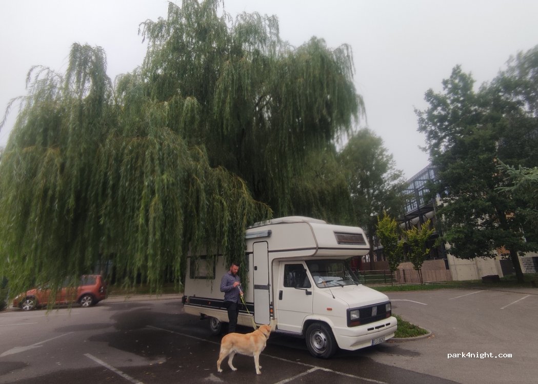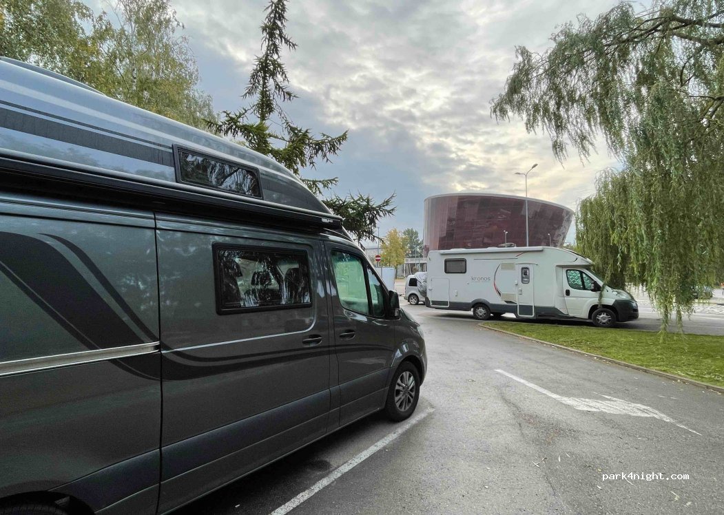 Free, spacious parking next to the concert hall. good for a night in the city, although there were some loud BMW owners enjoying themselves a bit too much just next to us. fortunately, they didn't stay long. the parking is situated just next to the marina where you can find a tap with water.