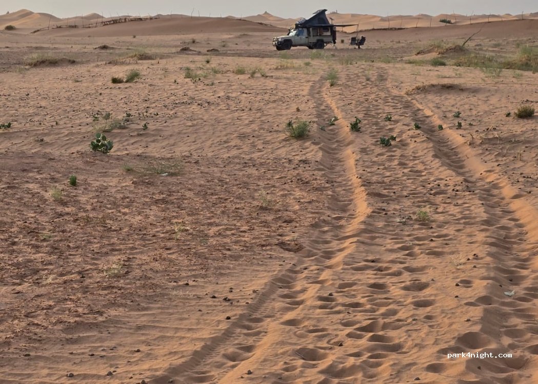 The drive in can be done without a 4x4, but there isn't a proper road. Rough unpaved tracks for 5km which will put a lot of vibration through the structure of a camper van and the parking place isn't worth the risk of damaging a vehicle. No other campers there and i left for a much better site in the town which was also in the dunes