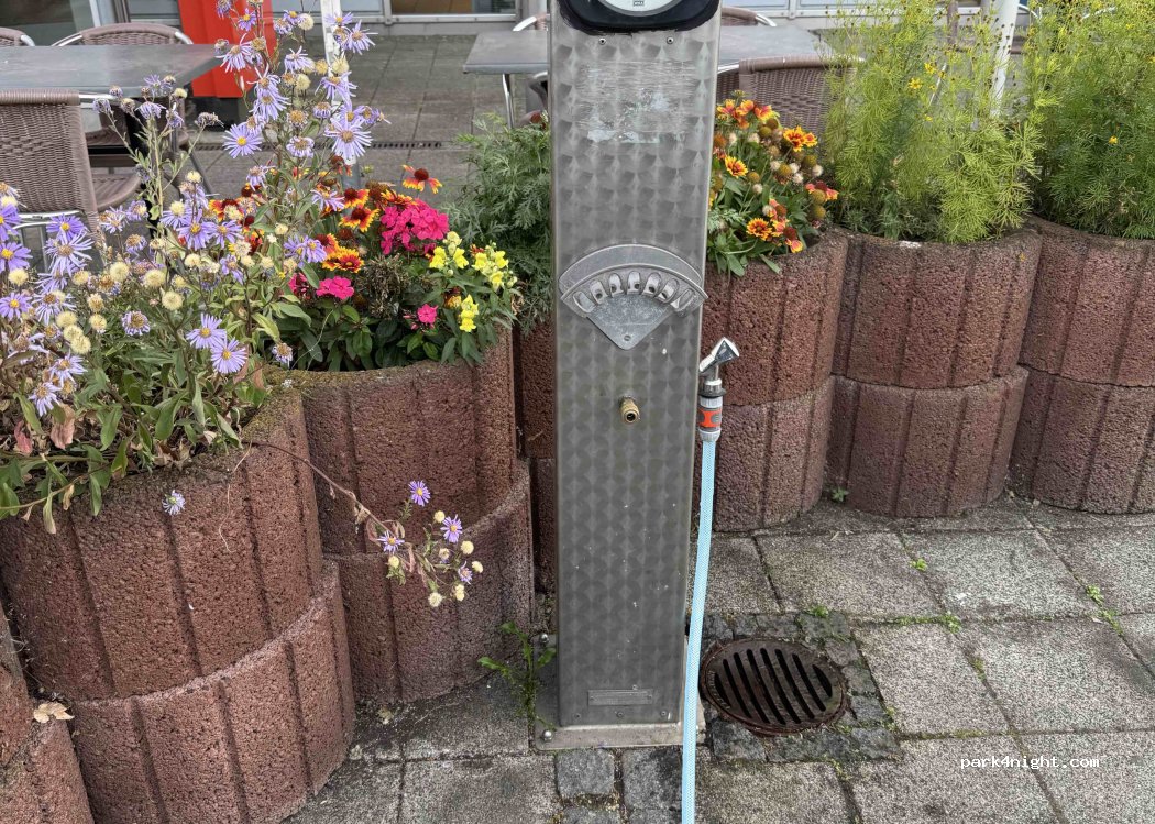 Motorway rest area with water connection at the gas station (see picture) Showers 4€, toilets 1€