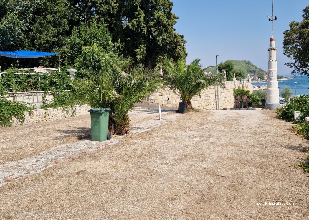 schöner kleiner Platz ohne Schatten direkt am Wasser mit Strand - Bar und Restaurants . Oma Maria ist zur Zeit etwas krank und kann nicht raus kommen, daher bitte zu Ihr ins Haus gehen oberhalb von dem Platz. Ganz liebe Oma