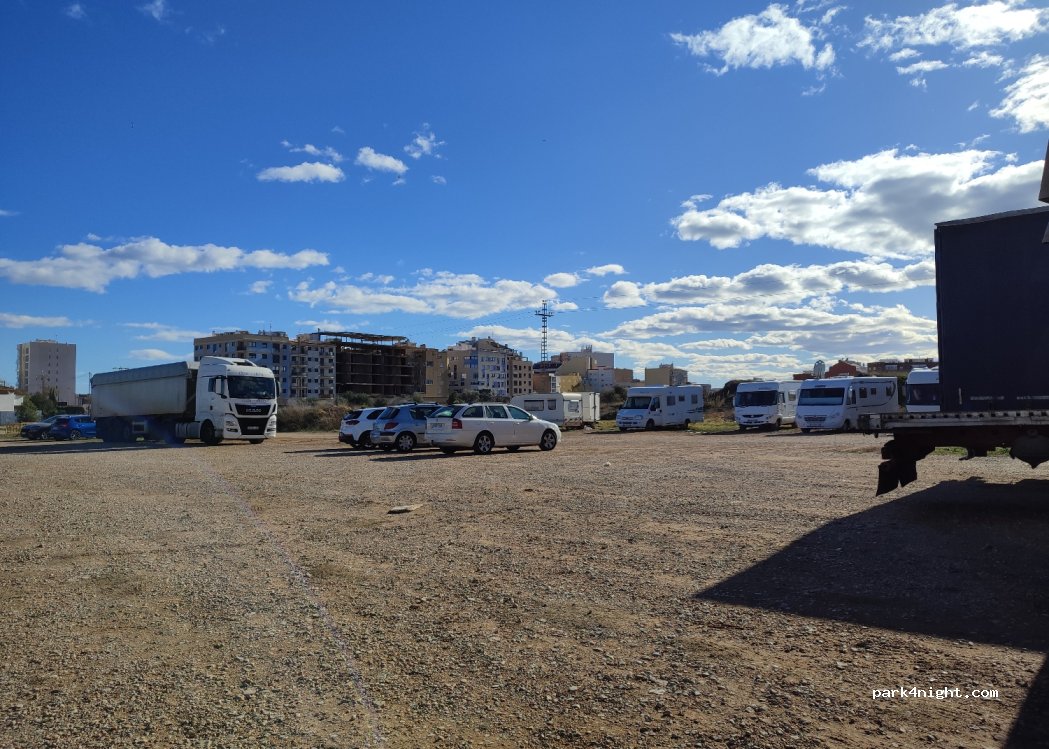 nous nous y sommes arrêtés pour 2 jours. c'était assez calme, mais de la poussière avec les engins de travaux qui viennent y déverser leurs gravas. Cette année, le gigantesque carnaval de Vinaros a eu lieu la semaine du 10 février, donc énormément de monde et de camping-cars.