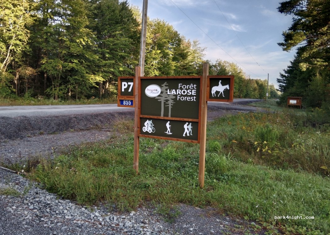 Nous avons passé la nuit sans problème, il n’y a pas d’affiche de non-parking, c’est un parc forestier de sentier de vélo, il y a même des toilettes sèches. Boisé, très calme, Je recommande !