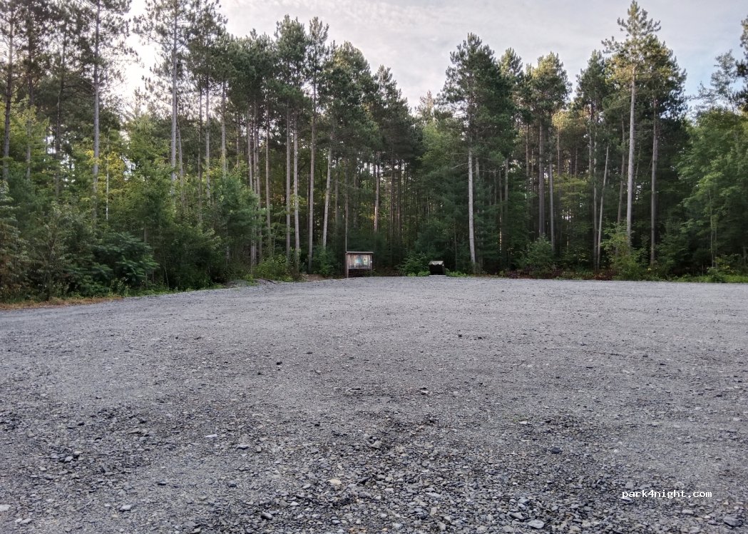 Bel endroit avec très peu de circulation accessible uniquement par une route de gravier. Au milieu du bois et un endroit idéal pour regarder les étoiles. J'y ai passé toute la nuit et je n'ai pas vu une seule autre voiture. Aucun signe limitant le stationnement n'importe où.