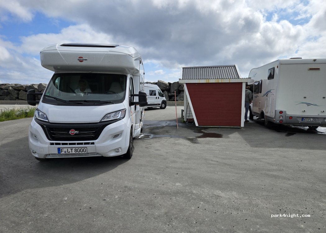 Nach der Fähre, die wir um 3:00 Uhr in der Nacht nahmen, waren wir froh für diesen Platz. Einfach den schmalen Weg weiterfahren und dort sehr easy für 250 NOK eine gute und ruhige Nacht verbringen. V und E ist komfortabel.