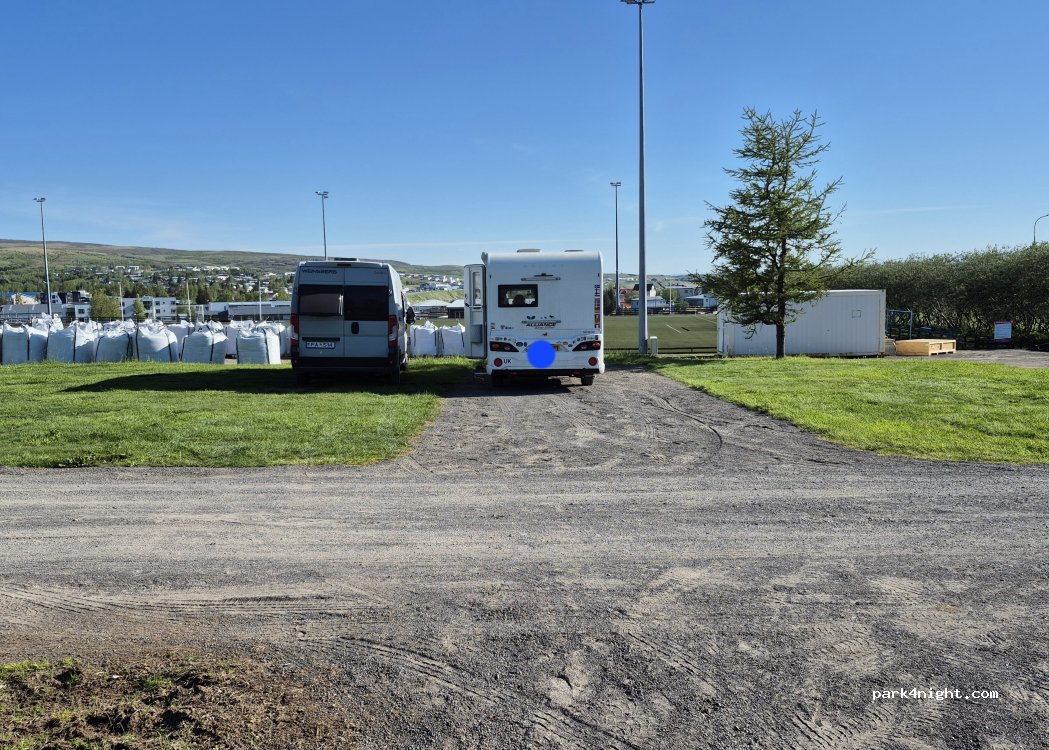 Inferiore alla media rispetto allo standard dei campeggi in Islanda, terreno erboso ma senza visuale, vicino ad un campo da calcio. È una buona base di appoggio per recarsi al porto per la gita in barca alla ricerca delle balene. In parte possibilità di utilizzo corrente elettrica, in parte no. 1 solo blocco servizi con due docce gratis, acqua calda ma docce molto sporche