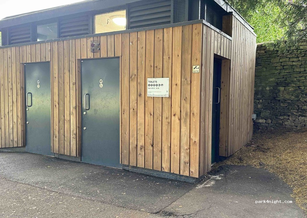 Toilets nearby, in town, next to a really nice park. Second favourite overnight stay so far