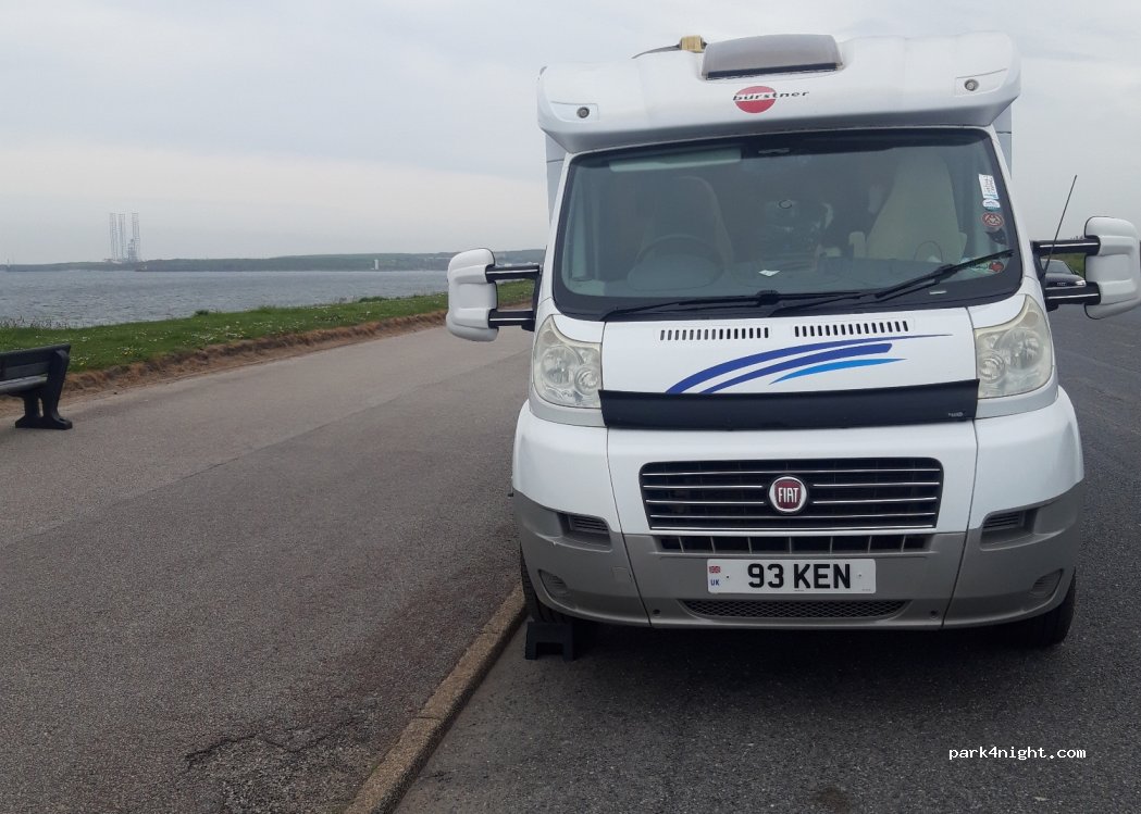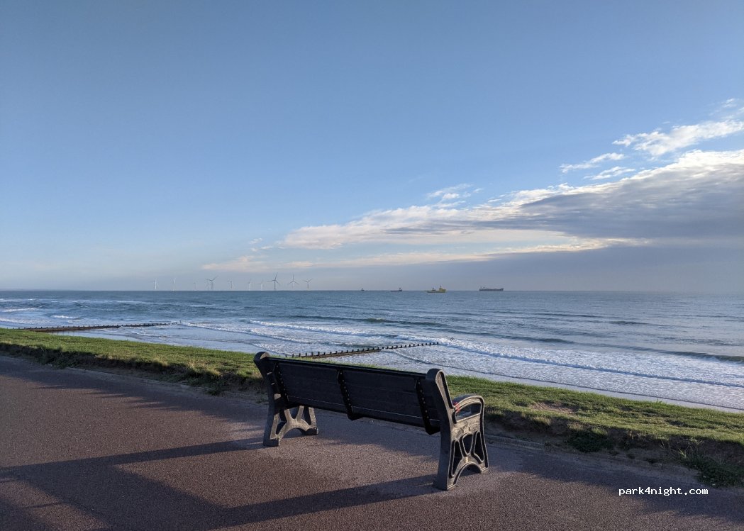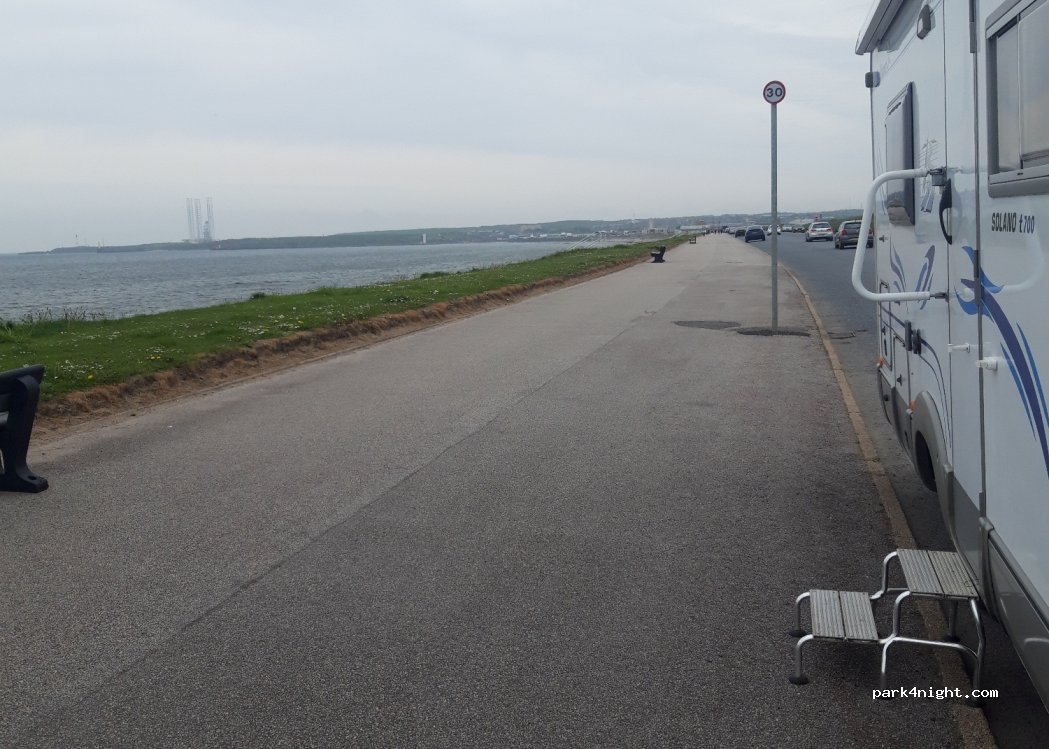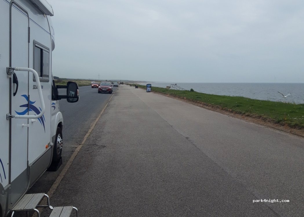 Free roadside parking with a lovely view of the beach and sea off to the East. No facilities. Shops, cafes and cinema are fairly close, down the beach esplanade.