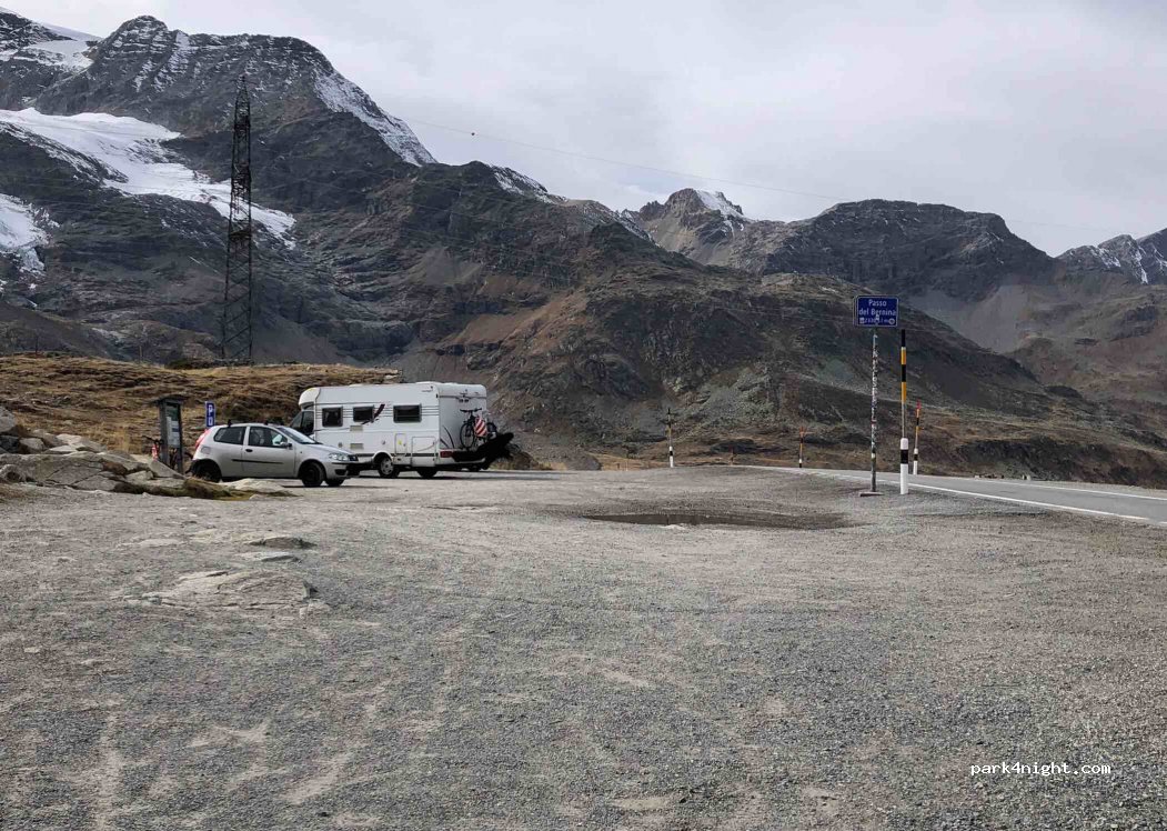 Posto fantastico in corrispondenza del passo del Bernina dove poter ammirare il bellissimo panorama attorno. Spazio agevole anche per mezzi grandi.
