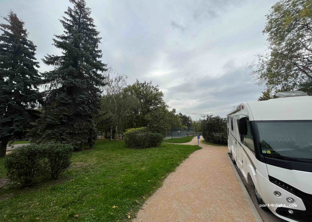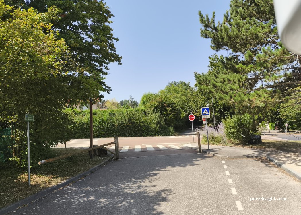 Quiet parking in a dead end, almost flat. Children's playground, 3 tennis courts and 1 basketball/football court. 1 water fountain. Dardilly le Jubin train station 8 mins walk. About thirty meters to park.