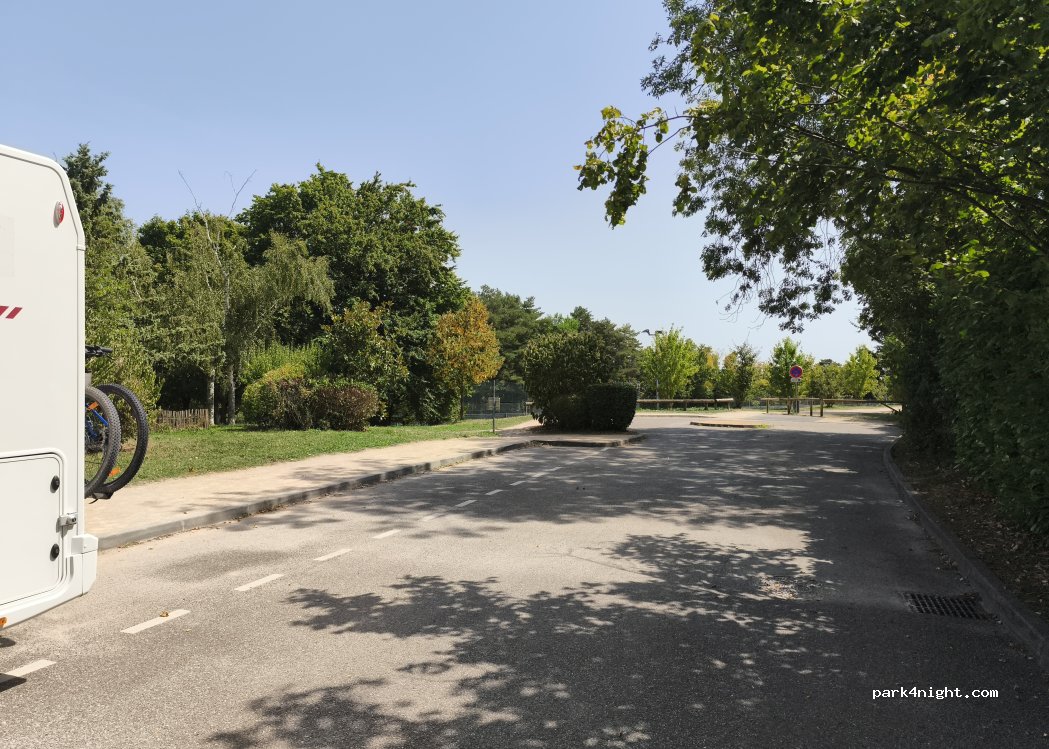 Stationnement tranquille dans une impasse, quasiment plat. Marc de jeux pour enfants, 3 cours de tennis et 1 terrain de basket/foot. 1 fontaine à eau. Gare ferroviaire de Dardilly le jubin à 8 mn à pied. Une trentaine de mètres pour stationner.