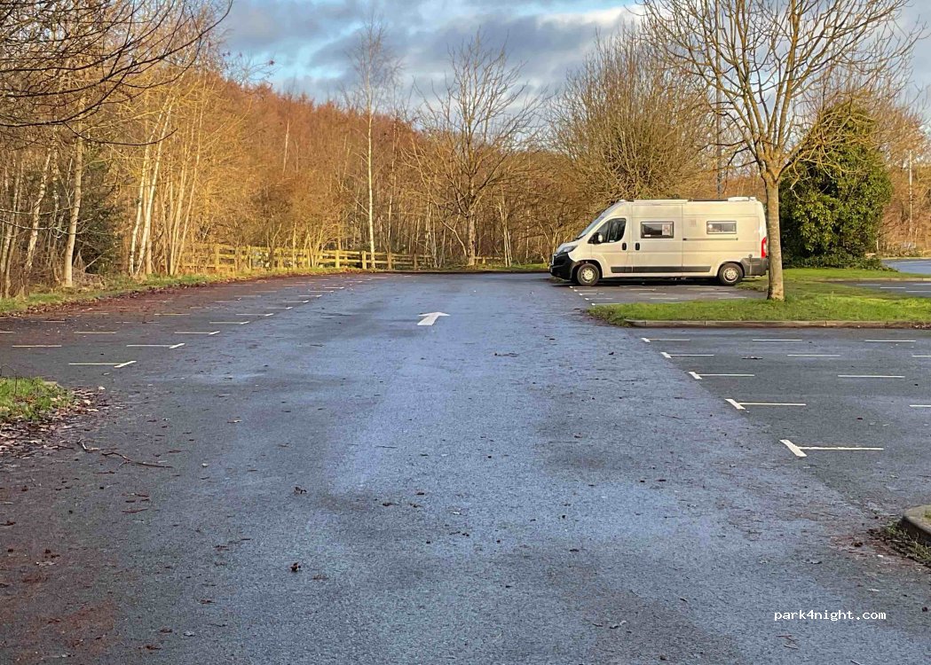 Another great spot on P4N. Car park well lit overnight and not a single vehicle all night. Lovely walks along river passing visitor centres with cafe, Nine Arches Aquaduct and remains of Old Hollinside. It felt safe to leave van and go for a long walk. River was in full spate due to recent rain.