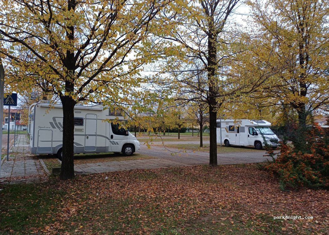 Abbiamo lasciato il van una notte incostudito perché siamo andati a fare il tour del prosecco in bici. Nessun problema. Parcheggi ottimi, stalli ok per un 540, mezzi più lunghi possono sfruttare il bordo di rispetto presente vicino ai marciapiedi. Parzialmente alberato e abbastanza in bolla. Tranquillo e silenzioso.