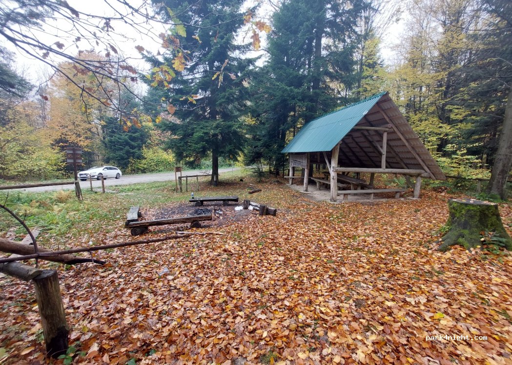 Oficjalnie Picknickplatz, eingerichtet von der Forstwache "Nadleśnictwo Strzyżów" von Strzyżów. Soroud von Wald.
