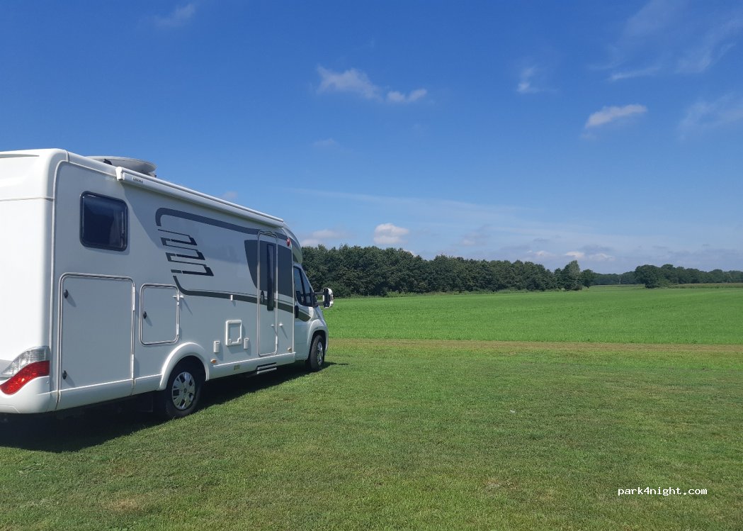 Die Aussicht auf Wiesen bis zum Wald ist sehr schön. Rehe kommen am Abend in Sichtweite. Plätze nur durch Ketten abgeteilt. Keine Abwasserentsorgung!! Sanitäranlagen einfach, Türen schließen schlecht. Supermarkt und Bäcker 1,3 km. Vergnügenspark in der Nähe deutlich hörbar.