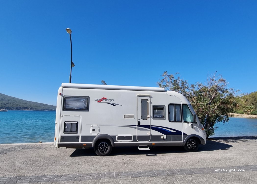 6.00 dan uzun karavanlar için geri dönüş oldukça zor. Market ve restaurantlar çok yakın.