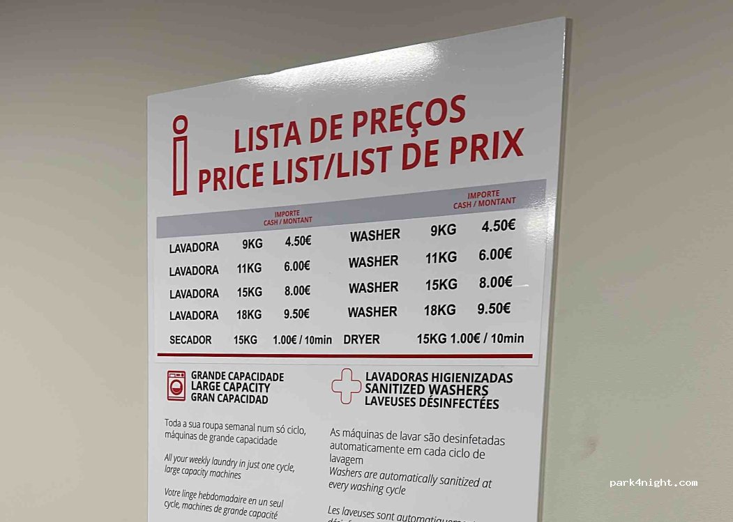 Laverie top avec des places assises, pour se garer il y a des places à 50 mètres même en gros van aménagé, nous avons pu également recharger notre batterie EcoFlow à l’aide des prises secteur que la laverie a mit à disposition !