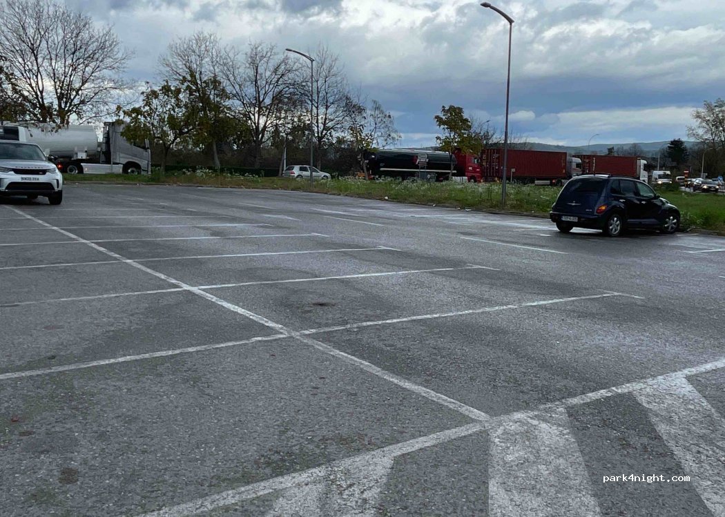 We spent a couple of hours in this parking lot. Because it was Sunday, the supermarket was closed, so the parking was empty. Centre on 20 minutes walk. I recommend the gas station linked to the parking lot ( same company as supermarket- Bingo ) for low-priced fuels.
