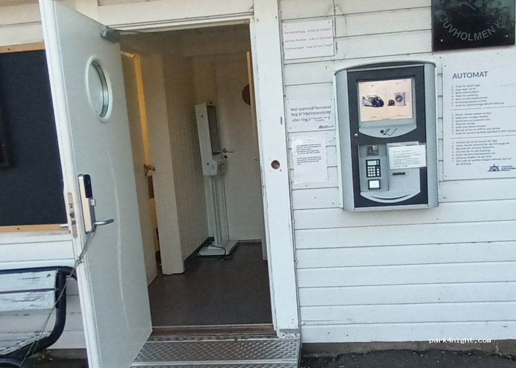 Der Preis inkl Strom liegt aktuell bei 340 NKR und muss mit Bankkarte am Automaten erfolgen. Es gibt eine Unisex-, eine Behindertentoilette und eine Dusche.