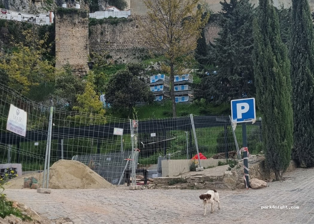 Aparcamiento a los pies del castillo, muy tranquilo y silencioso, al menos entre semana.