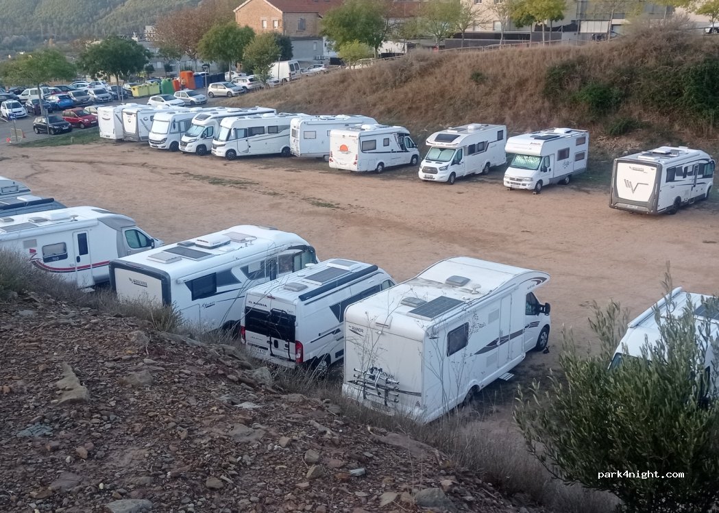 Gran esplanada de terra una mica inclinada. Hi ha un pipican, contenidors d’escombraries de reciclatge i una font. Hem passat 2 nits molt tranquiles per la fira d’oficis medievals. A 5-10 mins caminant al Poble Vell de Súria.