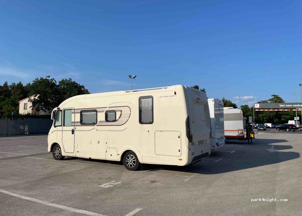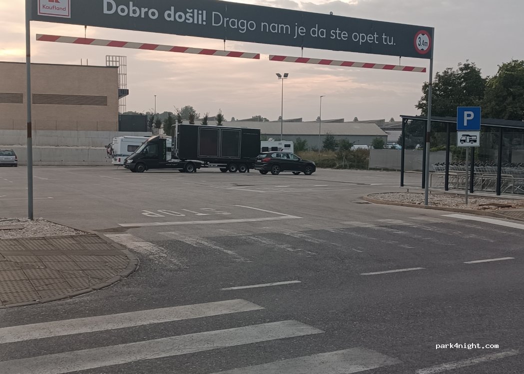 Parkiralište uz trgovačke centre, Eurospin, Kaufland, Lidl, Muller, Hervis... 8 mjesta za kampere, ali na nekima su i auti parkirani, ali okolo je dovoljno mjesta za stati na normalna mjesta.