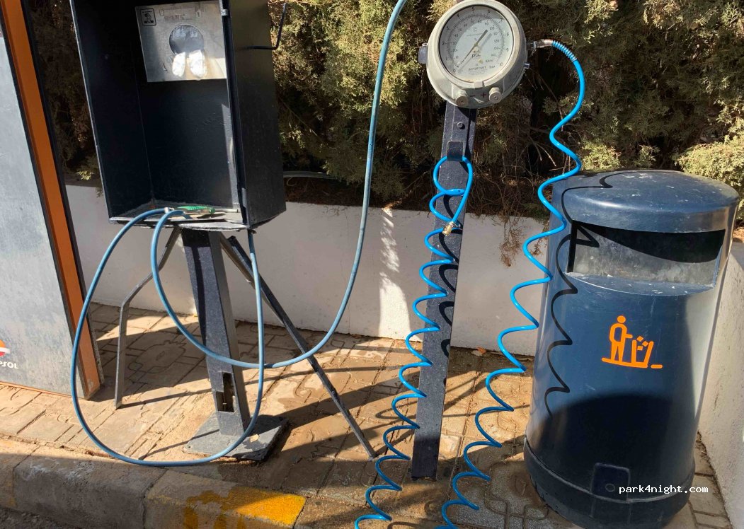 Freies Wasser und Luft. Man darf die Toiletten in der Tankstelle verwenden.